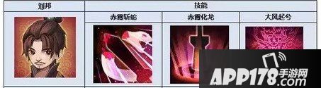 刘邦在游戏中的技能为AOE的赤霄斩蛇和赤霄化龙,和提供友军有益BUFF的大风起希。