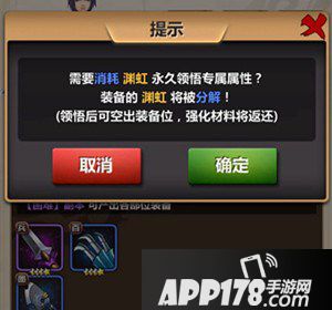 相信很多玩家应该注意到了游戏中,英雄页面里的领悟功能(就在装备栏下面)。所有的英雄可以通过吞噬自己的专属装备来获得永久的属性提升!这样空出来的位置还能穿戴新的装备(可对战力有极高的提升哦~)。这个功能在每个英雄的装备页面点击领悟按钮均可实现,吞噬装备会返还部分材料。