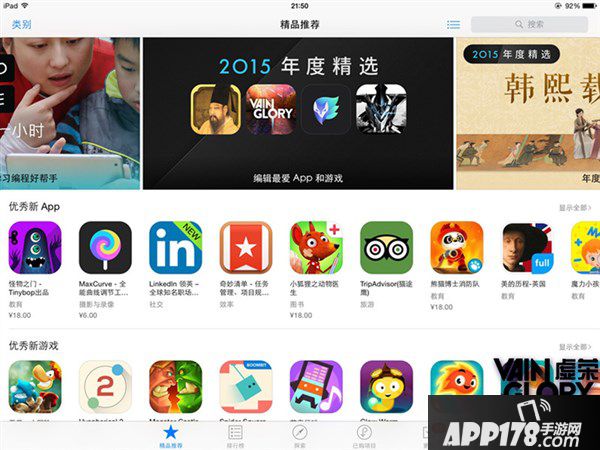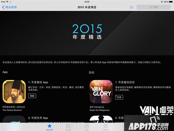 2015年度重磅劲爆消息来袭!革命性移动电竞手游《虚荣》昨夜加冕为王!荣获苹果iPad端2015年度最佳游戏!