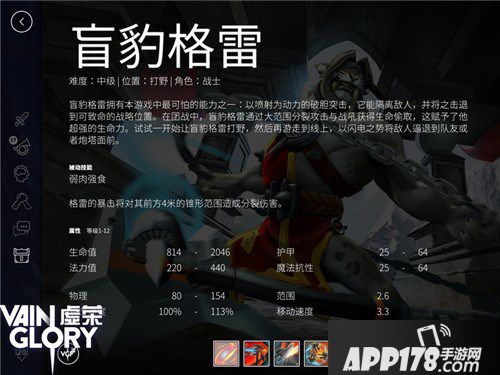 盲豹格雷是《虚荣》中的一名个性英雄,常常在国际性的高端赛事现身,却较少在普通玩家的对战中出场,这名官网定位为野区战士的英雄,有着高爆击、高护甲、高血量的特点,并且,在战场的前期、中期、后期都能配合出装拥有不俗的表现。究竟如何才能发挥其英雄特色呢?且看小编一一道来。