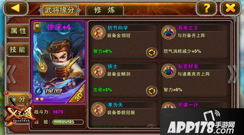 有人说徐庶是诸葛亮出现之前,蜀国的第一谋士。后来又被曹操所擒,变成了魏国人,和关羽共同构成了“身在曹营心在汉”的不朽故事!他不算蜀国,也不能是魏国人,《X三国》就把他归到群雄那边了!虽然很多三国迷有所质疑,但《X三国》为徐庶打造的缘分系统,也是完全忠于他的三国经历。和刘备、曹操、诸葛亮的缘分,让他的搭配完全不受群雄身份的影响哦!