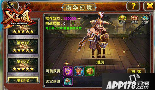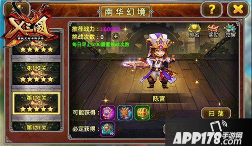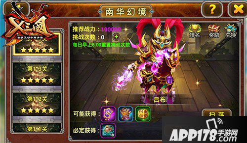 建议:本关卡的难点在于抵御貂蝉和吕布的输出。在选择阵容的时候特别要注意自己的输出和肉盾比例、以及后排输出的生存能力。考虑到副本的时间比较久,疾行炼阵会是不错的选择,8武将一起上场,瞬间突破!