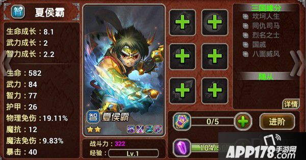 夏侯霸:近战杀伤型,混合伤害,善于收割濒死的敌人,独白:“领兵打仗不过是我的表面工作,我真正的身份是一位研究僧。”(作者旁白:作为研究僧,你已经犯了杀戒,罪过。)