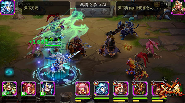 在《X三国》中,一骑当千+群英混战,是本年度最独特的战斗模式,也完全还原了真实的三国对阵!主将单挑,基情拼杀之后再是场面盛大的群雄混战,战斗的感觉相当酸爽也极富创意!
