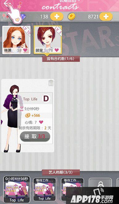 完成五星通告后,艺人可自主选择是否接受长期合约。在同时拥有多个合约的情况下,玩家可根据完成通告所需时间以及所获得的金币数量,选择性价比较高的几个“长期合约”排进档期。
