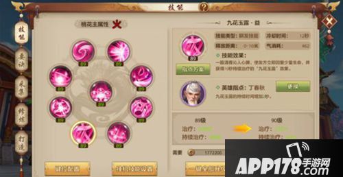 桃花还有一个优点就是治疗,虽然团队中一定都会有一个奶妈,但是有桃花存在等于是多了一个小奶。桃花的九花玉露是持续治疗技能,因此桃花在给队友扔一个九花玉露之后可以转头关注另外一个队友,这样不用持续对着一个目标。虽然桃花的治疗效果并不是很高,但是桃花的主要定位也不是治疗,所以都是顺手给队友带一些治疗量。