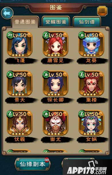 点击伙伴——图鉴——仙缘副本就可进入相关界面,这里逻列着你所能挑战的所有仙缘副本。