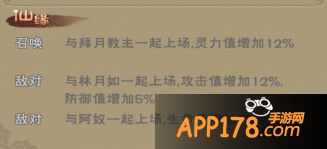 由图可见,水魔兽的仙缘效果还是不错的。属性加成全部激活的情况下,可以增加15%的生命值,5%的防御值,12%的攻击值和12%的灵力值,正可谓进可攻退可守。仙缘有关的人物也是游戏中比较主流的林月如和阿奴,配合起来也能打出不错的AOE效果。可见水魔兽还是值得培养的,但是本身卡十分稀少难得,建议玩家如果真的想选择水魔兽作为麾下一员还是放眼后期为妙。