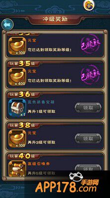 4、升级奖励,玩家在升级的过程中是有元宝奖励的,在冲级宝箱那领。