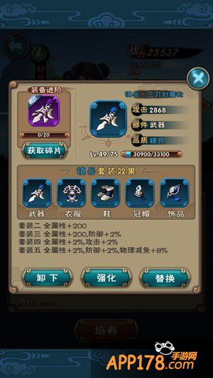 紫色装备是通过蓝色装备进阶得到的,蓝色装备+20个对应的紫色装备碎片可以升级为相应的紫装。
