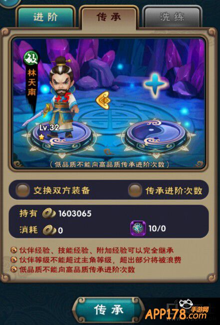 玩家花费一定数量的铜钱和传承丹就可以完成转换了。