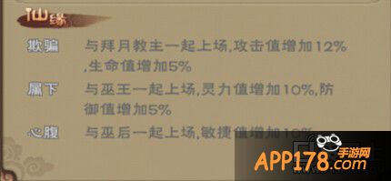 小编点评:石长老的仙缘不是很好凑。巫王巫后不是玩家们经常选择的卡牌,拜月教主更是土豪才能拥有的神卡。仙缘方面不得不说石长老十分无力。