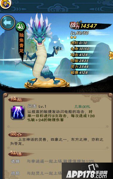 以上就是APP178手游小编为您带来的新仙剑侠传手游三星橙卡独角青龙的介绍,更多精彩内容请继续关注APP178手游新仙剑奇侠传手游专区!