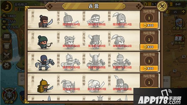 2、士兵等级:士兵等级与所属武将等级无关,只与兵营等级有关。