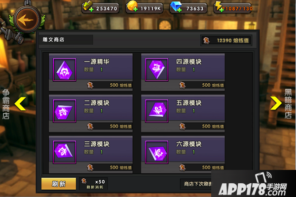 f.雕文商店:雕文商店中出售紫色的勇士套装雕文,玩家可以使用熔炼值来进行兑换。