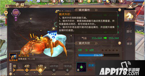 1、骑术提升消耗灵草,不同阶等级所需求的灵草品质是不同的