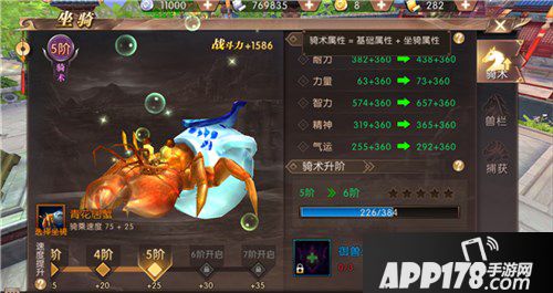 3、骑术升级将会提升骑术的基础属性