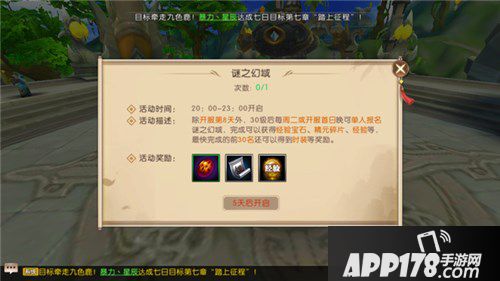 谜之幻域共有20层,每一层有三个传送门,随机把玩家传送到更高层、更底层或者当前层,每传送到5、10、15层都有额外奖励,通关20层有通关宝箱奖励。如果通关的速度达到一定名次,根据排名还会有额外奖励哦!