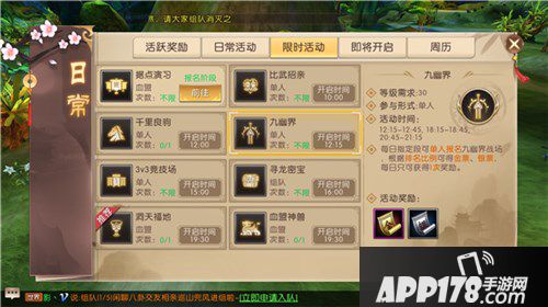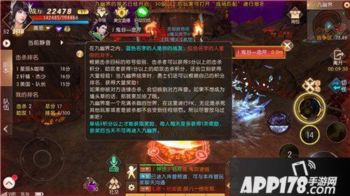 进入九幽界就会分为两个阵营,击杀敌方阵营的人可以获得5积分,助攻是1积分,还可以获得大量的经验。经常被地方阵营击杀就会切到敌方阵营。在九幽界击杀玩家是不会涨杀气,也不会收到任何惩罚的。特别要注意的是单场5积分以上的玩家才可以获得最终奖励,每人每天最多领取一次奖励,领取过就不可以在进入了。