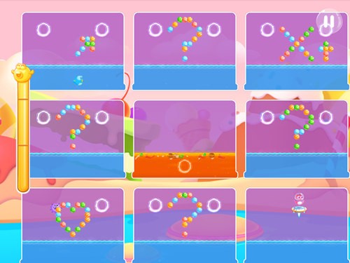 游戏首次以九宫格的形式布局,而每个格子中最多存在着两个路口。每个路口的选择都将会直接影响到接下来是否能够收集到糖果,甚至可能因为选错路而直接掉入中间的鱼锅。在每个格子中,糖果都分布成各种形状,例如箭头、问号、心形等,但这并不是什么提示,只是加大收集的难度而已。