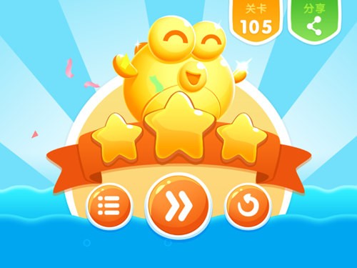 接下来气球就会慢慢向左侧移动,如果时机没有掌握好,木棍最后还是会将气球从左侧再带回去。所幸本关有三颗泡泡气球,所以可以允许一次失败。在小鱼在星星上方时就可以点破,这样就会收集到两颗星星并掉入到穿越洞口之中。