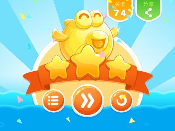 首先我们得先找准时机在两个海胆怪的中间收集到第一颗星星,之后趁海胆怪离开的同时跳跃启动蓝色的机关阀门,蓝色机关门就会碰触黄色按钮,小鱼即可跳入第二个水池之中,就可以与第一颗星星一样收集其他两颗星星。最后再等海胆怪离开范围即可操作小鱼跳上石板之上落入第三个水池以补充能量。