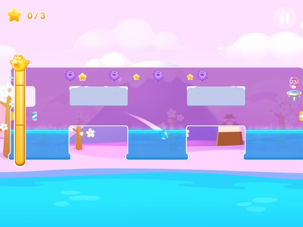 本关的初始位置就有两颗星星可以收集,虽然有旋转木块和弹簧鼓的影响,但并没有致命的陷阱,所以多尝试几次也可以将这两颗星星一并拿下。到了第2个水池时,就要开始选择向上或向下的路线,上面那条路就会被定向炮吸入并弹射至终点,而导致无法达成三星的成就。但即使你选择下方的路线也切记不可太过于用力,否则还是会被上面的定向炮所吸收。