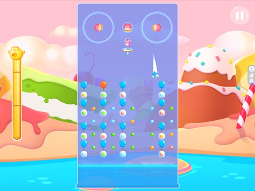 从布局上看,玩家首先要先收集到下方的糖果,但气球本身会不断地向上漂浮,这就加大了游戏难度。气球越往上,糖果也会随着气球不断上移,越往上就很容易被定向炮台吸入。所以必须要争分夺秒,争取在气球移动到上方时全部收集完成。