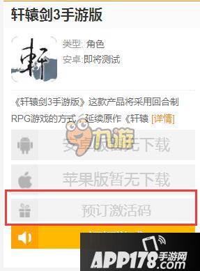 由于目前游戏还没有正式的上线,因此激活码可能需要等上一段时间哦!不过各位小伙伴们可以关注APP178手游轩辕剑3手游专区,如果到时候发放激活码了,那么将会在第一时间在专区上显示哦!