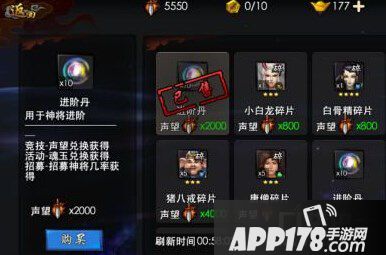 通过挑战和每日排名奖励可以获得声望,消耗声望可在兑换中换取各种极品道具以及各种神将碎片。