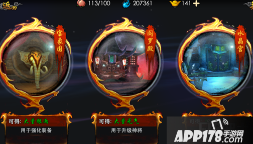 神魔boss:西行的关卡中过关会随机触发,一只硕大无比的阎王站在你的面前阎王的绝技是<生死轮回>3回合释放,横扫一切敌人。不过可以闪避,看你运气咯。击杀神魔的奖励可以用来换取稀有神将碎片和材料,击杀阎王时有几率召唤出暴走阎王!属性大幅度提高,但是击杀奖励是原奖励的十倍