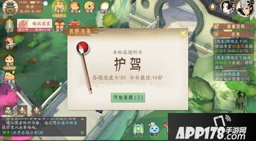 问题范围涵盖故事、人文、诗赋、谜语、常识等众多科目,少侠需要回答出各种领域的问题,不可轻视疏忽。答错会增加计时时间,切记要经过思考后再慎重作答。每位队员拥有一次求助机会,即去掉一个错误答案,且全队共享,侠士们不妨约上三五好友共同挑战增加胜算。