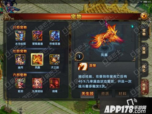 宠物就是玩家的宝宝,最忠实的伙伴,每个宠物都身怀绝技,与众不同。下面口袋小编给大家带来的是七档宠物凤凰的技能和属性讲解,一起来看看吧。