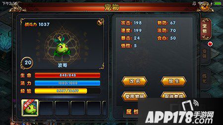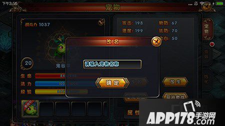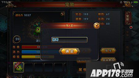 首先选择要改名的宠物,点击进入宠物界面,然后选择宠物栏,这是你就会看到一个改名的按钮,如下图,点击进去。