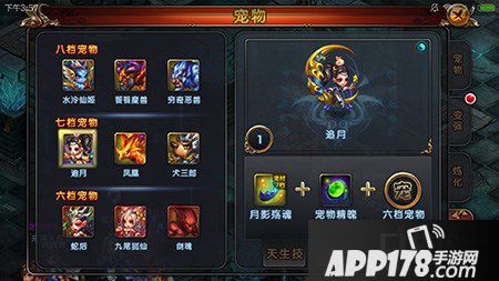 合成方法是需要月影殇魂+宠物精魄+六档宠物,这样就能合成1个完整的七档宠物追月。