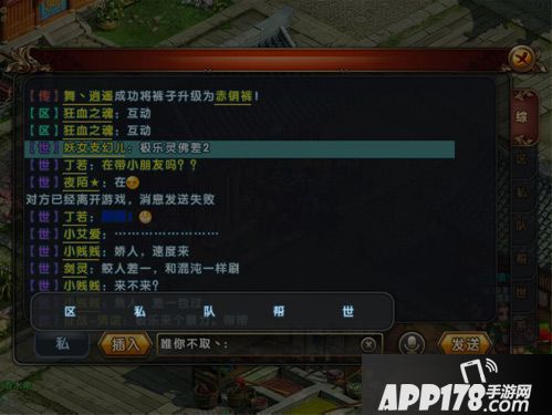默认的聊天框是综合的,下面可以切换单独的私聊对话框,这一点还是比传奇要高级的,不过小编还是想吐槽,一点都不方便啊有木有,离线还不能留言不是坑爹吗!