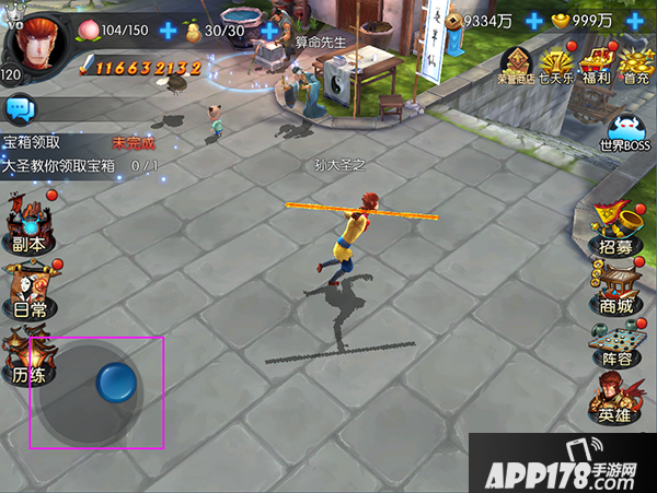 在界面中,左边靠下,猴砸看到的是副本、日常和历练三个玩法入口。