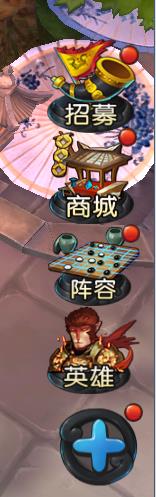 在主界面的右下角,分别是招募、商城、阵容和英雄四个按钮
