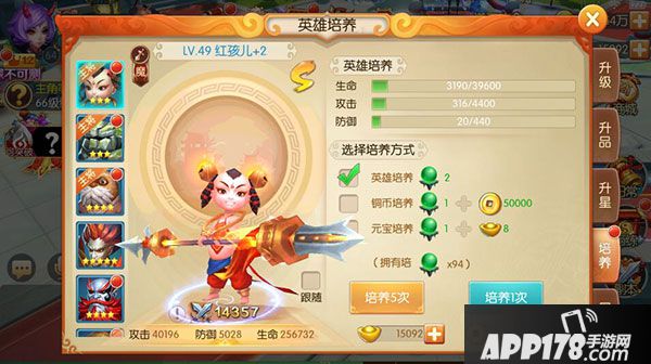 英雄还能消耗培养丹增加玩家的攻防血属性哦!