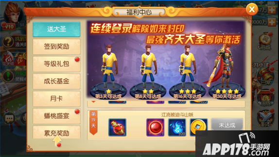 连续登入奖励:赠送SS级英雄齐天大圣。