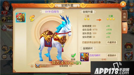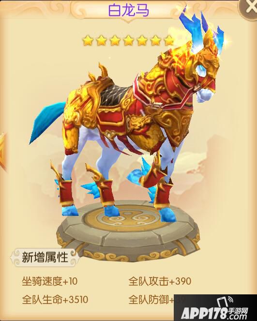 其实坐骑最主要的好处就是额外的增加属性的同时还能增加主角在游戏场景内的骑上坐骑的移动速度。