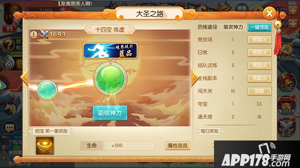 提升主角职业的战力除了装备宝石以及时装外,就是玩家个人的修行了。大圣之路修行除了能够提升战力,获得更多的职业变身卡,还能够有大量的奖励。