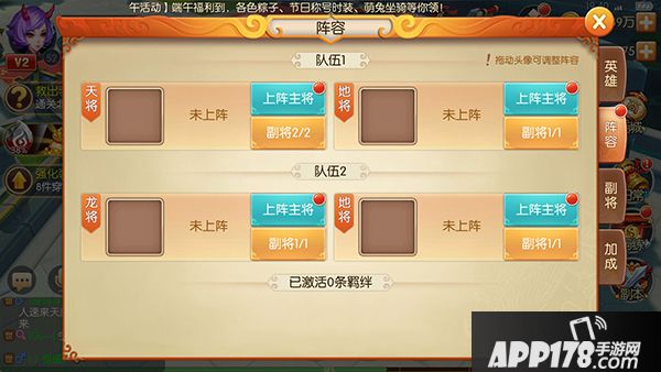 那不氪金是不是就不能玩了呢,答案是并不。无氪玩家有无氪玩家的办法,先来看看阵容。有4个位置,天将,地将,龙将,神将。
