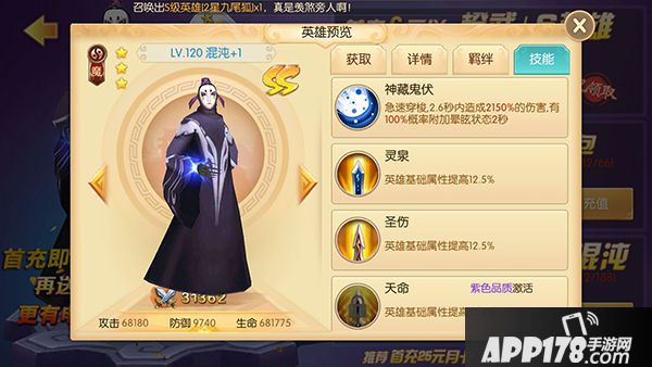 不过混沌有个缺点:不容易抽到。需要充188才能拿的到,不过拿到就是3星,还有其他的附加品,所以还可以,不算亏,如果真的想好好玩的话,可以首冲个188元RMB,性价比还是有的。