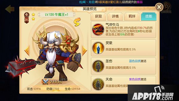 这里我推荐天将带牛魔,地将带金蝉子或者地藏菩萨。玩过网游RPG的玩家都知道,打副本要有MT,要有治疗,也就是俗称的坦克和奶妈。牛魔这英雄特别能抗,不但自己能抗,能拉着主角一起抗。附上一个治疗,生生靠英雄拖死对手。