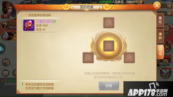 那么宝石要如何升级呢?宝石的升级途径就是3个相同等级的宝石合成一个高一级的宝石。模式很常规,一看就知道。