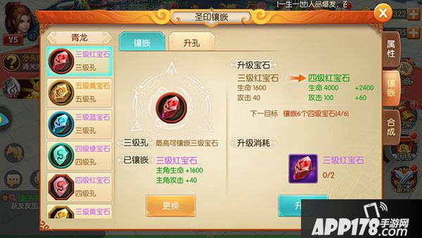 但是呢镶嵌宝石就不一样了,一开始的系统每个宝石孔只有2级,要升到3级需要一个3级玉如意,4级则需要3个3级玉如意合成的1个4级玉如意,你的宝石孔是几级,决定了你能镶嵌几级的宝石。