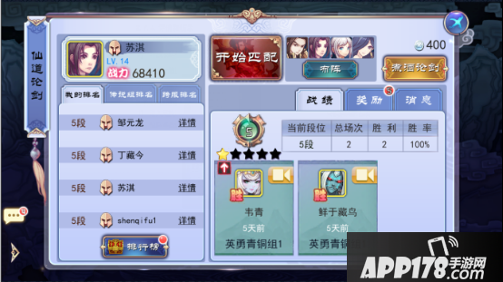 1.进入竞技场的方式是传统的排位机制,玩家点击“开始匹配”后,系统会根据玩家的段位选择合适的对手与其对战。与LOL的排位赛十分相似,净胜5场则会提升段位,失败也会掉段位。