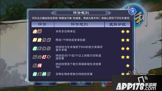 2)玩家在通关副本后的“评价规则”中,可以查看各种评价规则。