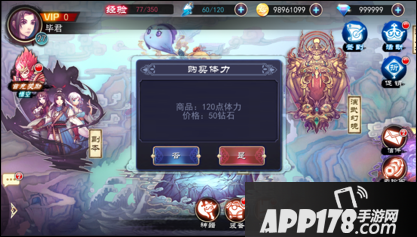 玩家还可以通过花费钻石购买体力,每次购买获得120点体力。玩家每日可以购买体力的次数与VIP等级有关,VIP等级越高可以购买体力的次数越多。